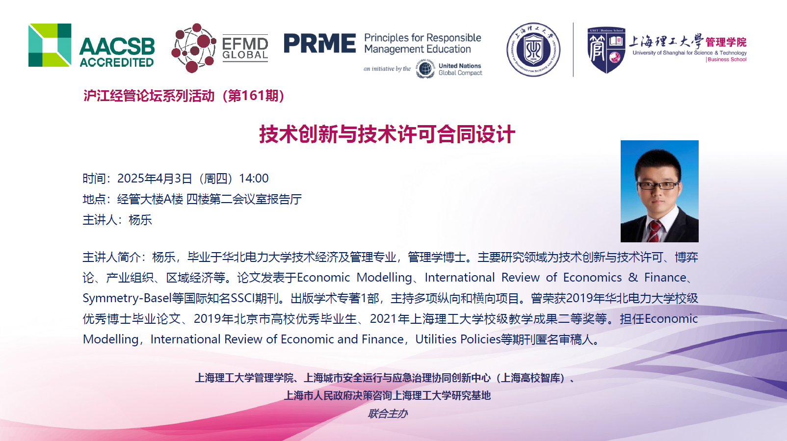 沪江经管论坛系列活动(第161期):技术创新与技术许可合同设计
