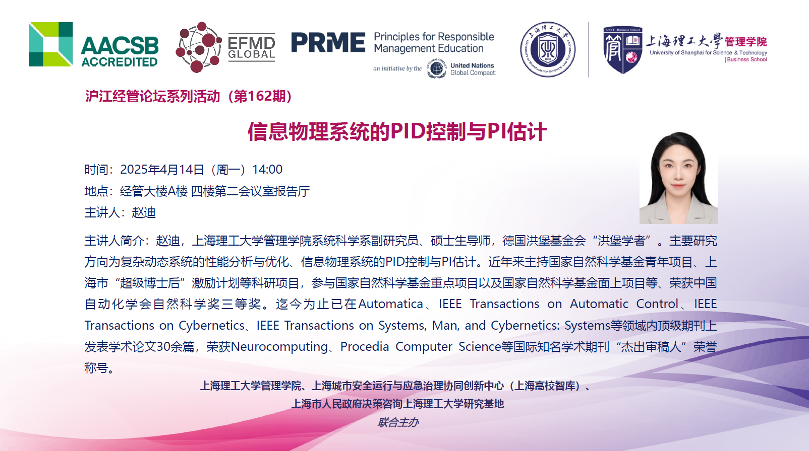 沪江经管论坛系列活动(第162期):信息物理系统的PID控制与PI估计