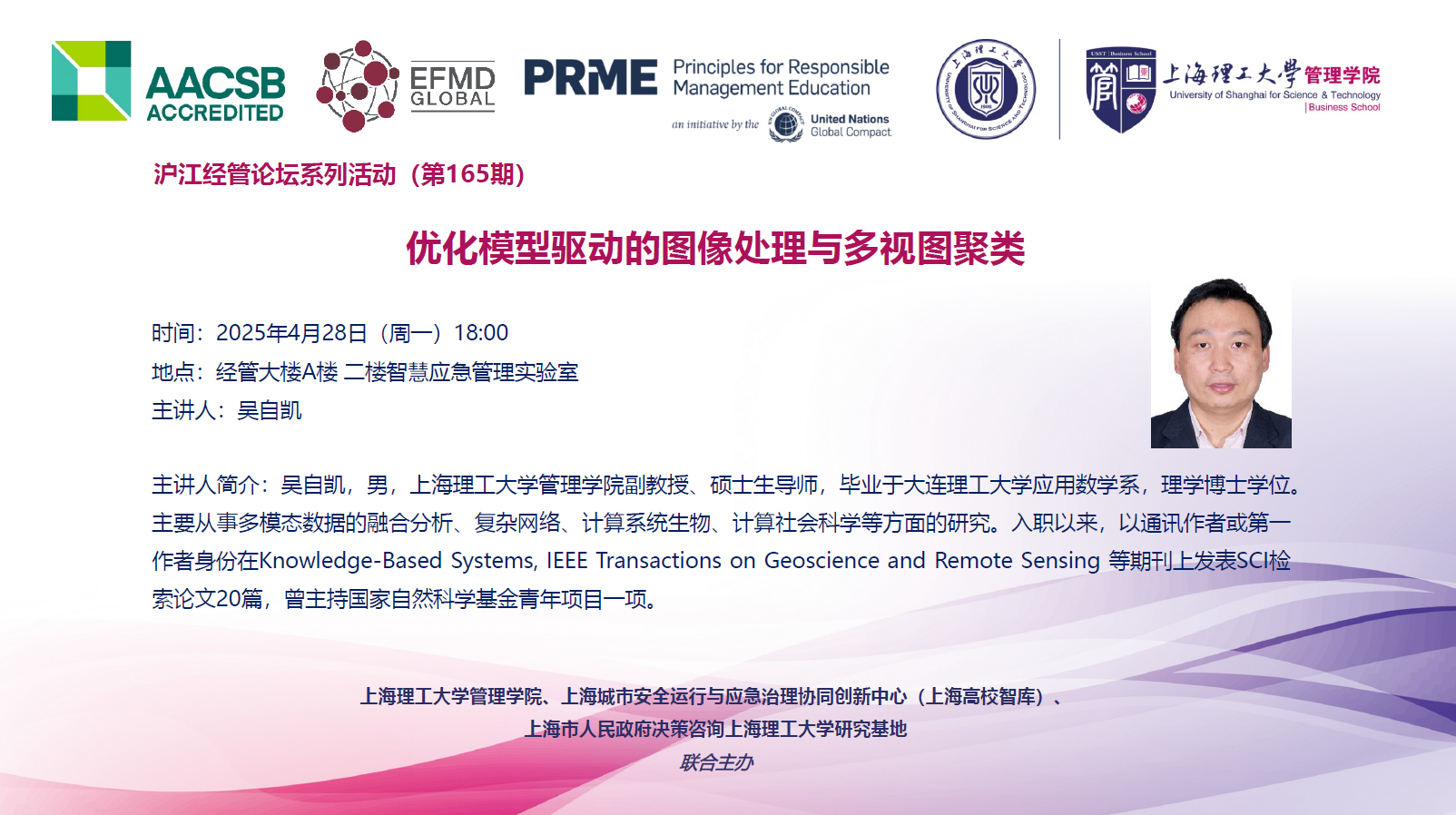 沪江经管论坛系列活动(第165期):优化模型驱动的图像处理与多视图聚类