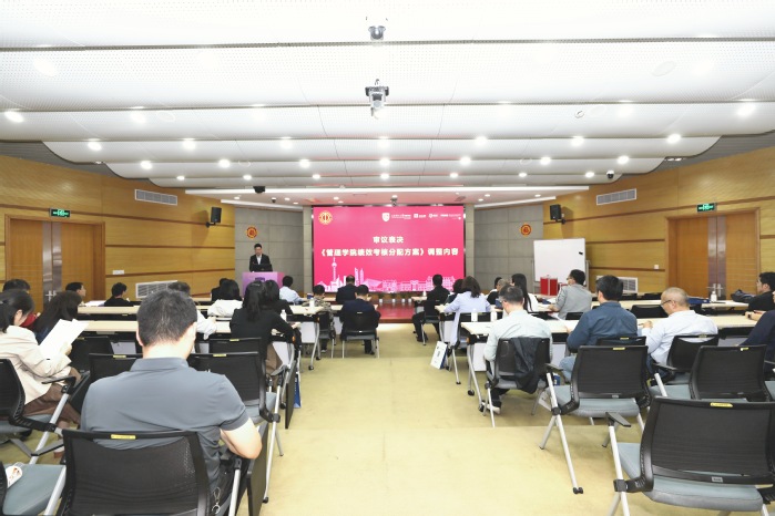 学院党委书记马静波就2025年度《管理学院绩效考核分配方案》进行了修订说明,副院长赵靖、房志明和刘巍魏随后分别就分管领域绩效考核分配方案修订部分做详细说明。