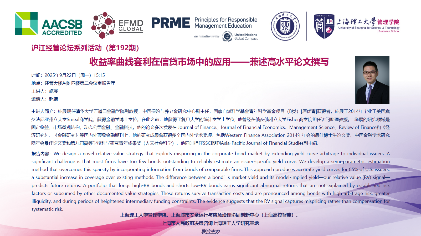 沪江经管论坛系列活动(第192期):收益率曲线套利在信贷市场中的应用——兼述高水平论文撰写