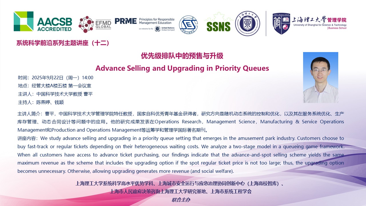 系统科学前沿系列主题讲座(十二):优先级排队中的预售与升级