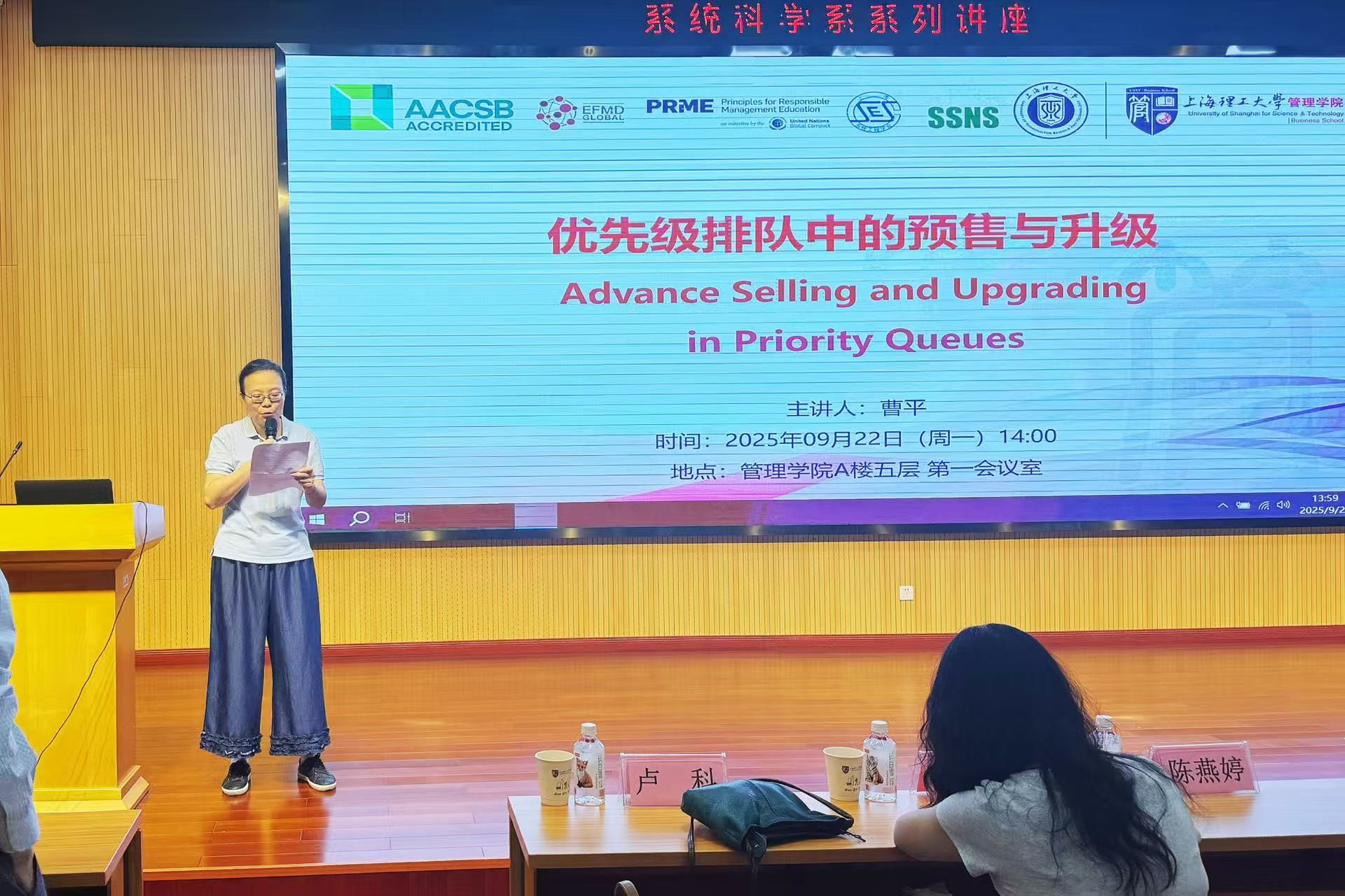 9月22日下午,乐鱼网页版系统科学系举办系列专题讲座,特邀中国科学技术大学管理学院曹平教授主讲《优先级排队中的预售与升级》(Advance Selling and Upgrading in Priority Queues)。讲座由系统科学系副教授陈燕婷主持,吸引了管理学院30多名师生积极参与。