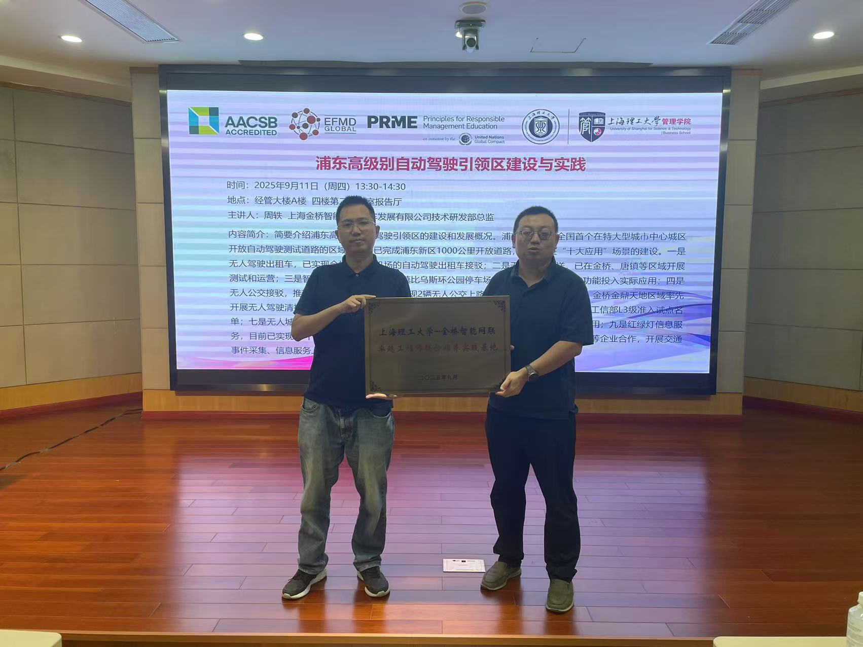 专家讲座环节,邀请上海金桥智能网联汽车发展有限公司技术研发部总监周轶和上海市浦东新区规划设计研究院交通市政规划所副所长张弛,就行业热点的“智能网联测试基地”和“浦东新区综合交通体系十五五提升思路”等主题进行介绍。周轶在回顾浦东高级别自动驾驶引领区的建设历程的基础上,以推进智能网联“十大应用”场景的建设,进行了详细阐释。作为杰出校友,张弛结合自身多年深耕浦东新区城市规划、交通规划行业的经验,为同学们深入讲解了“十五五”期间浦东新区综合交通体系优化提升思路,并鼓励同学们积极投身到浦东新区的建设和发展当中。