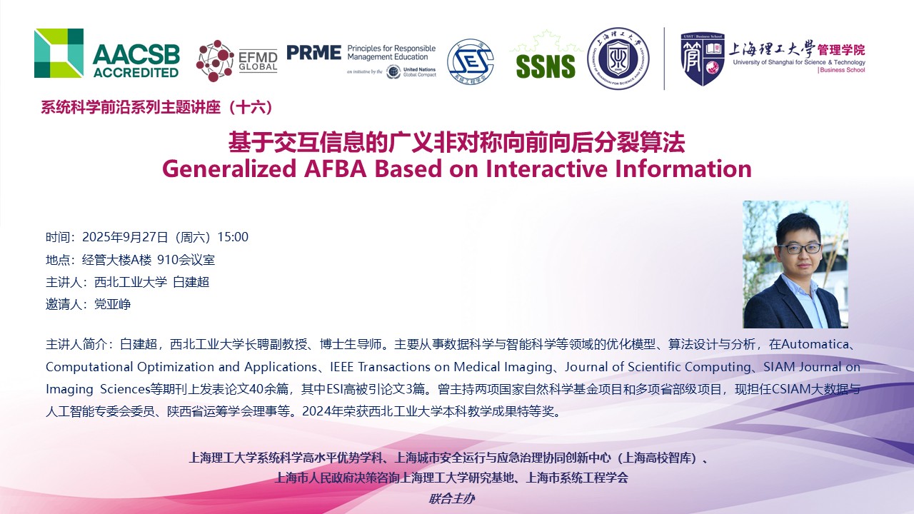 系统科学前沿系列主题讲座(十六):基于交互信息的广义非对称向前向后分裂算法