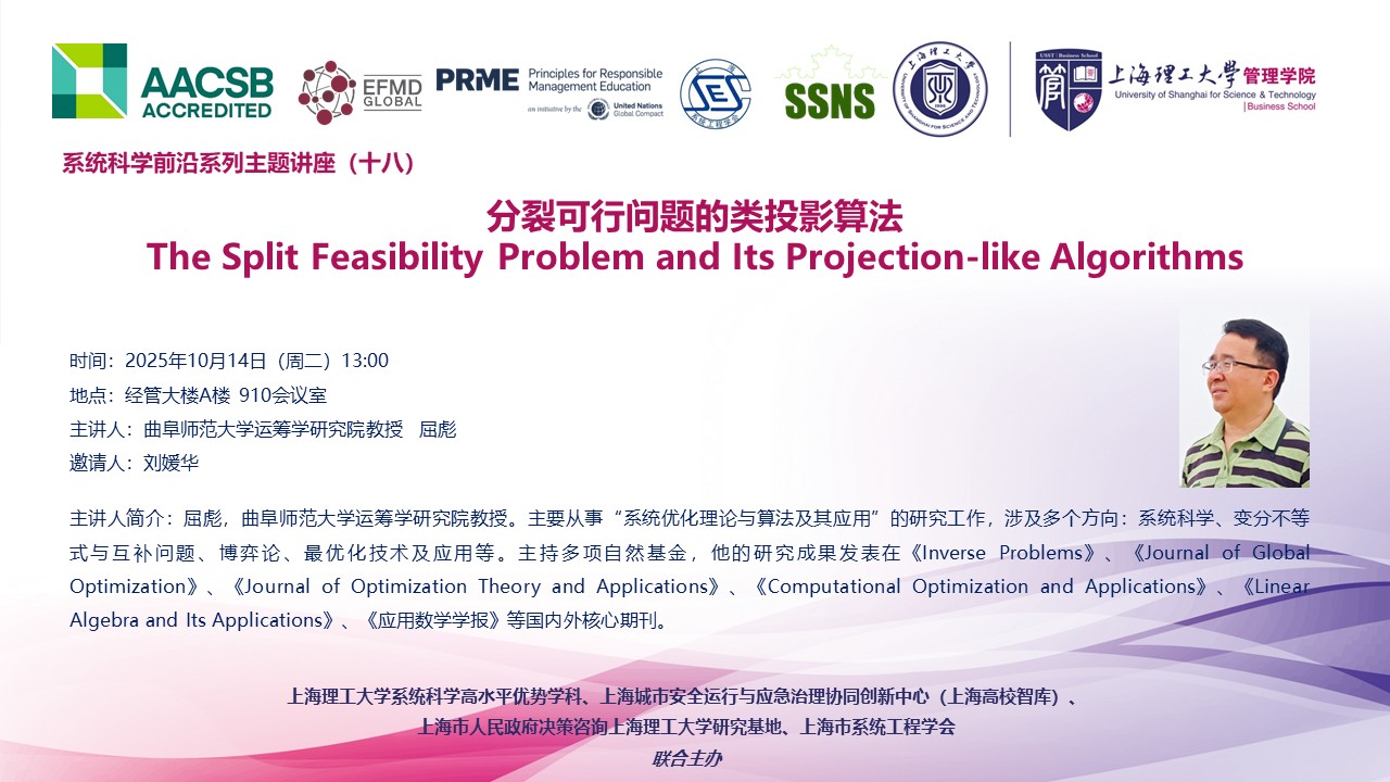 系统科学前沿系列主题讲座(十八):分裂可行问题的类投影算法