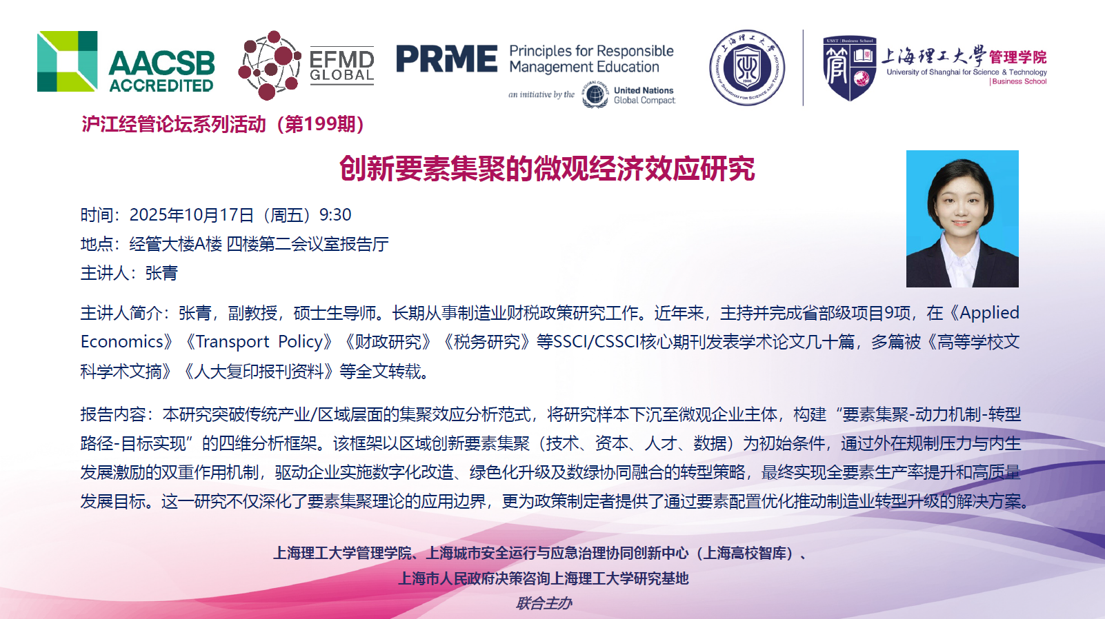 沪江经管论坛系列活动(第199期):创新要素集聚的微观经济效应研究