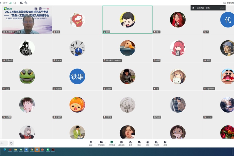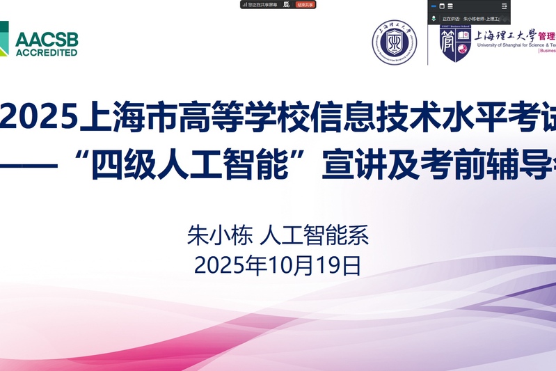 10月19日,为进一步落实信息技术创新人才培养要求,助力学生提升人工智能应用能力与就业竞争力,乐鱼网页版举办了“2025年上海市高等学校信息技术水平考试——四级人工智能”宣讲及考前线上辅导会。会议由人工智能系支部书记、上海理工大学电子商务发展研究院副院长朱小栋主持。