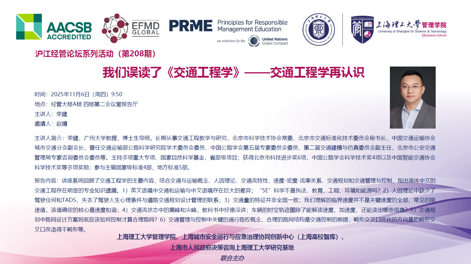 沪江经管论坛系列活动(第208期):我们误读了《交通工程学》——交通工程学再认识