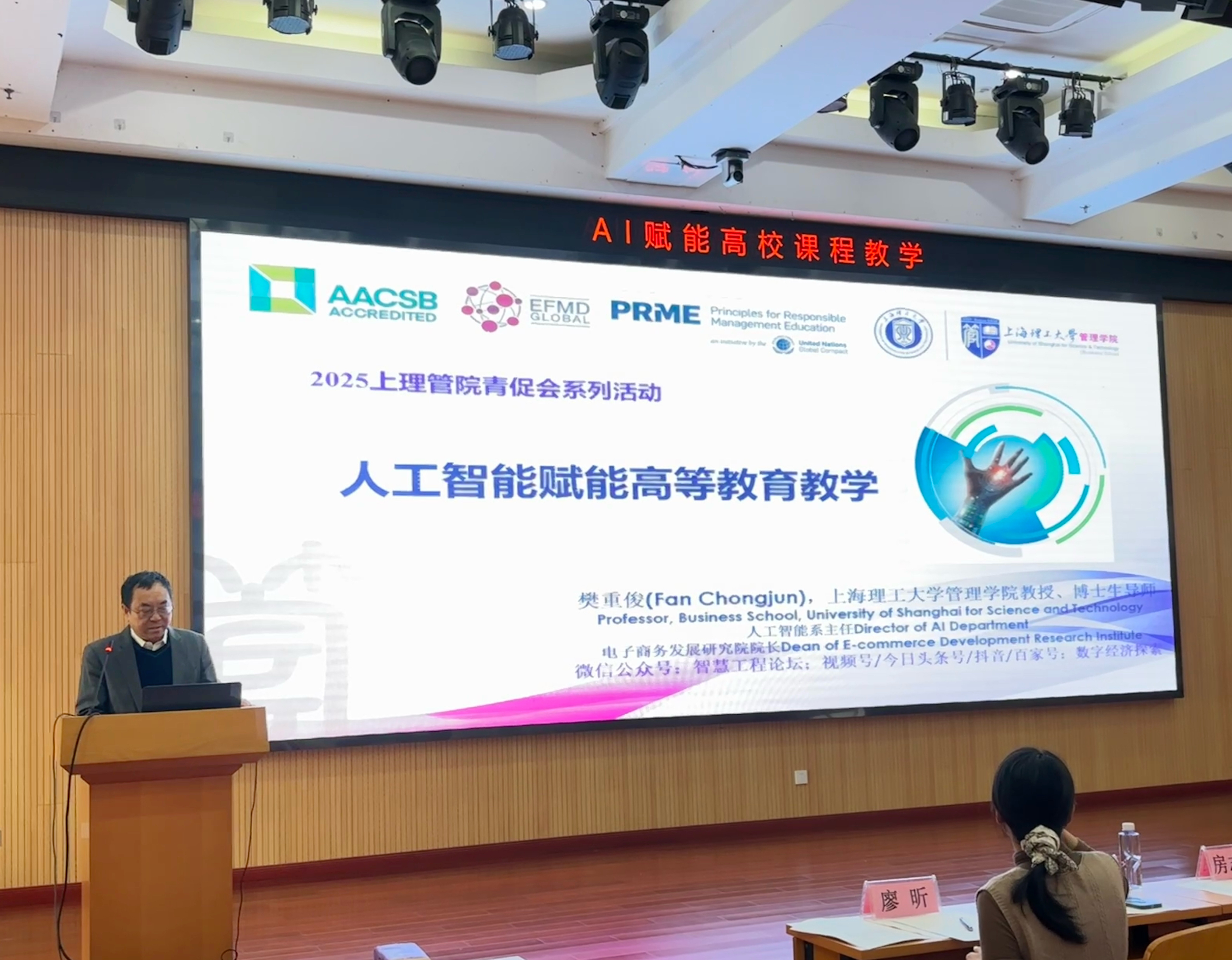 10 月 28 日,乐鱼网页版青年教师成长发展促进会2025年第六次活动在经管大楼A楼五楼第一会议室举行。本次活动以 “AI 赋能高校课程教学” 为核心主题,旨在帮助学院青年教师探索 AI 技术与课程教学融合的路径,提升教学创新能力。活动特邀管理学院人工智能系系主任、电子商务发展研究院院长樊重俊教授作经验分享,青促会指导教师李正明教授参与并开展专题辅导及活动总结,学院全体青年教师积极参与。活动由廖昕主持。