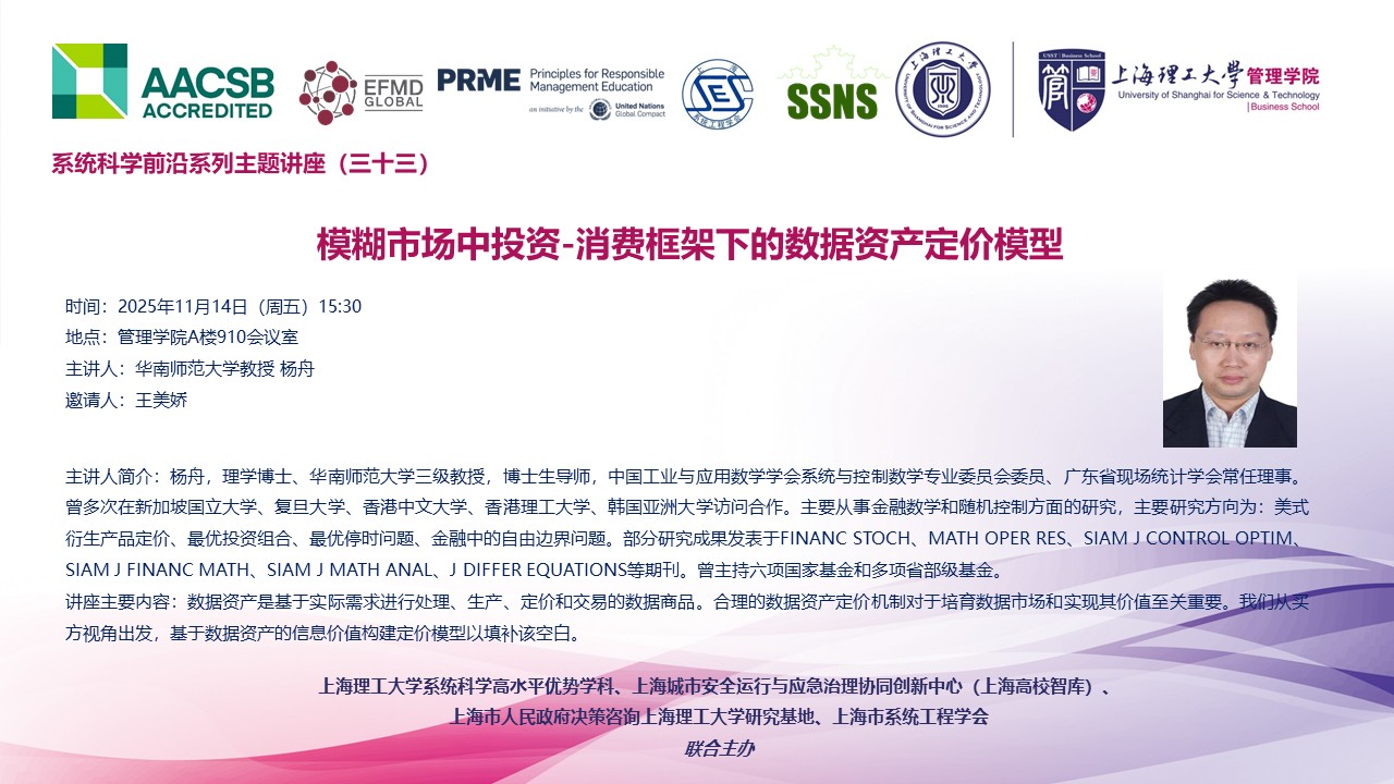 系统科学前沿系列主题讲座(三十三):模糊市场中投资-消费框架下的数据资产定价模型