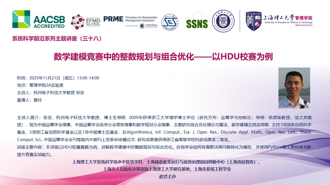 系统科学前沿系列主题讲座(三十八):数学建模竞赛中的整数规划与组合优化一以HDU校赛为例