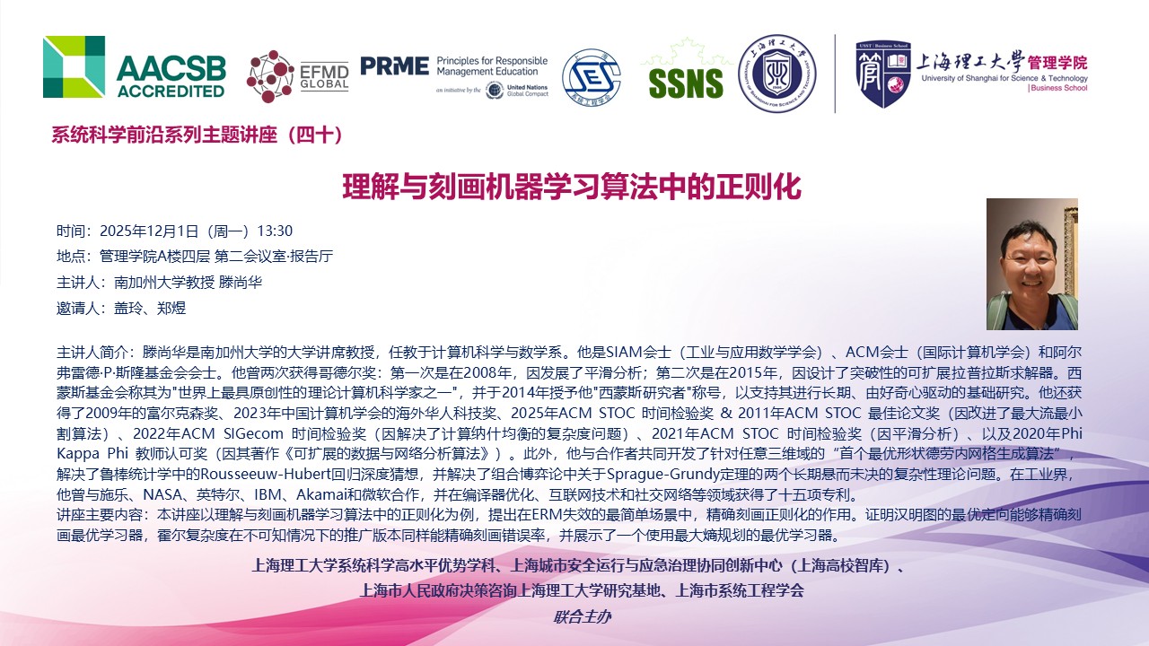 系统科学前沿系列主题讲座(四十):理解与刻画机器学习算法中的正则化