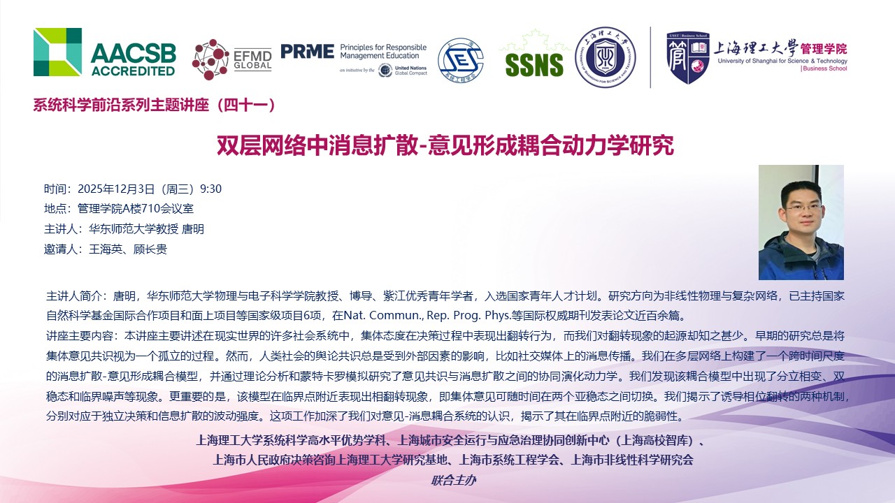 系统科学前沿系列主题讲座(四十一):双层网络中消息扩散-意见形成耦合动力学研究