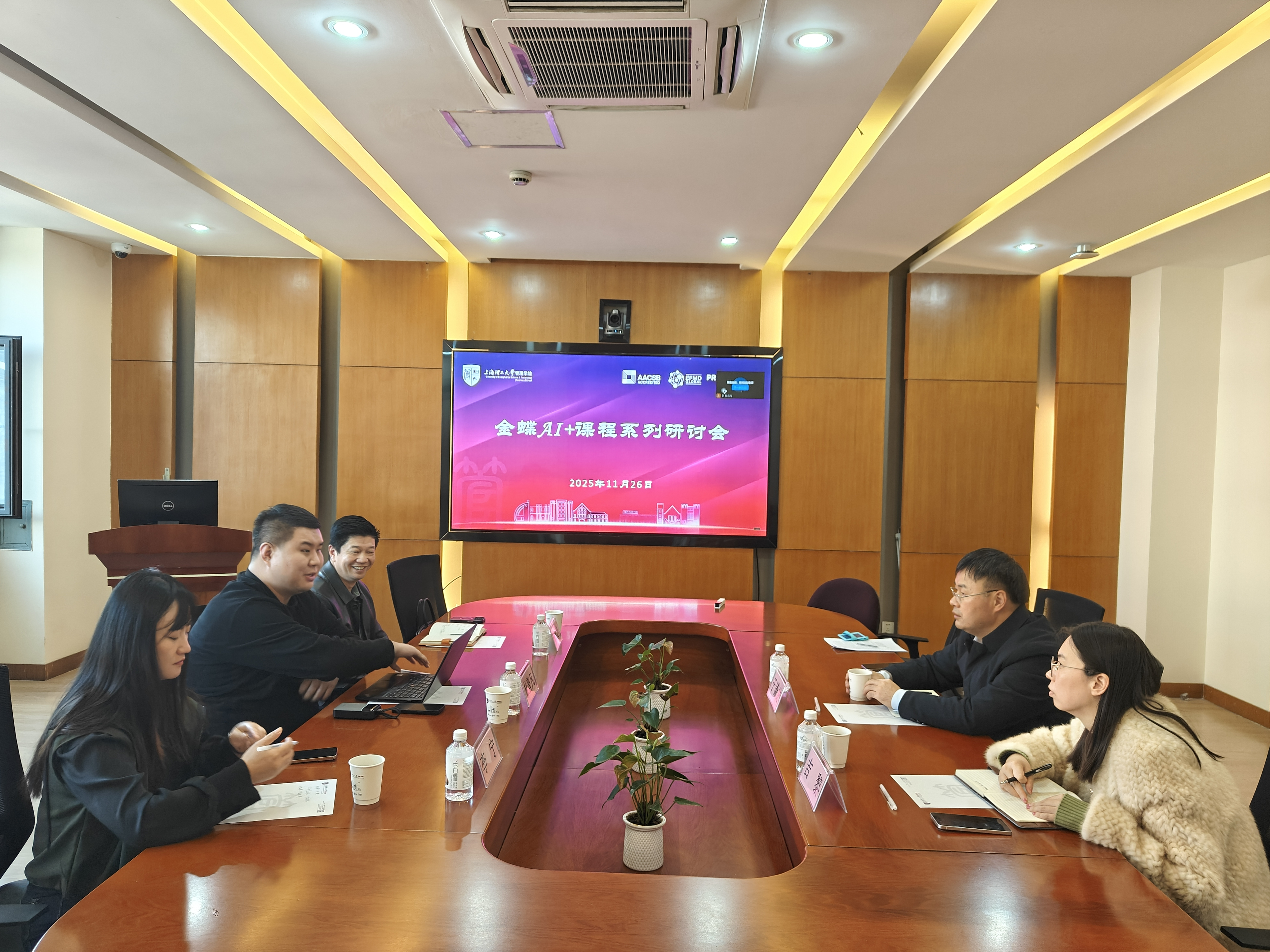 11月26日下午,会计与税务系在管理学院910会议室举办了金蝶AI+课程系列研讨会。金蝶教育事业部渠道经理杜普凡,上海禹峰智能科技有限公司董事长王宏忠,校企合作总经理李宁,会计与税务系主任、MPAcc项目副主任于谦龙,以及税收专业本科负责人吉黎参加了本次会议。此次研讨会标志着双方在推动高等教育数字化转型、深化产教融合、协同育人机制创新方面迈出关键一步,是响应国家“教育强国”“数字中国”战略的重要实践。