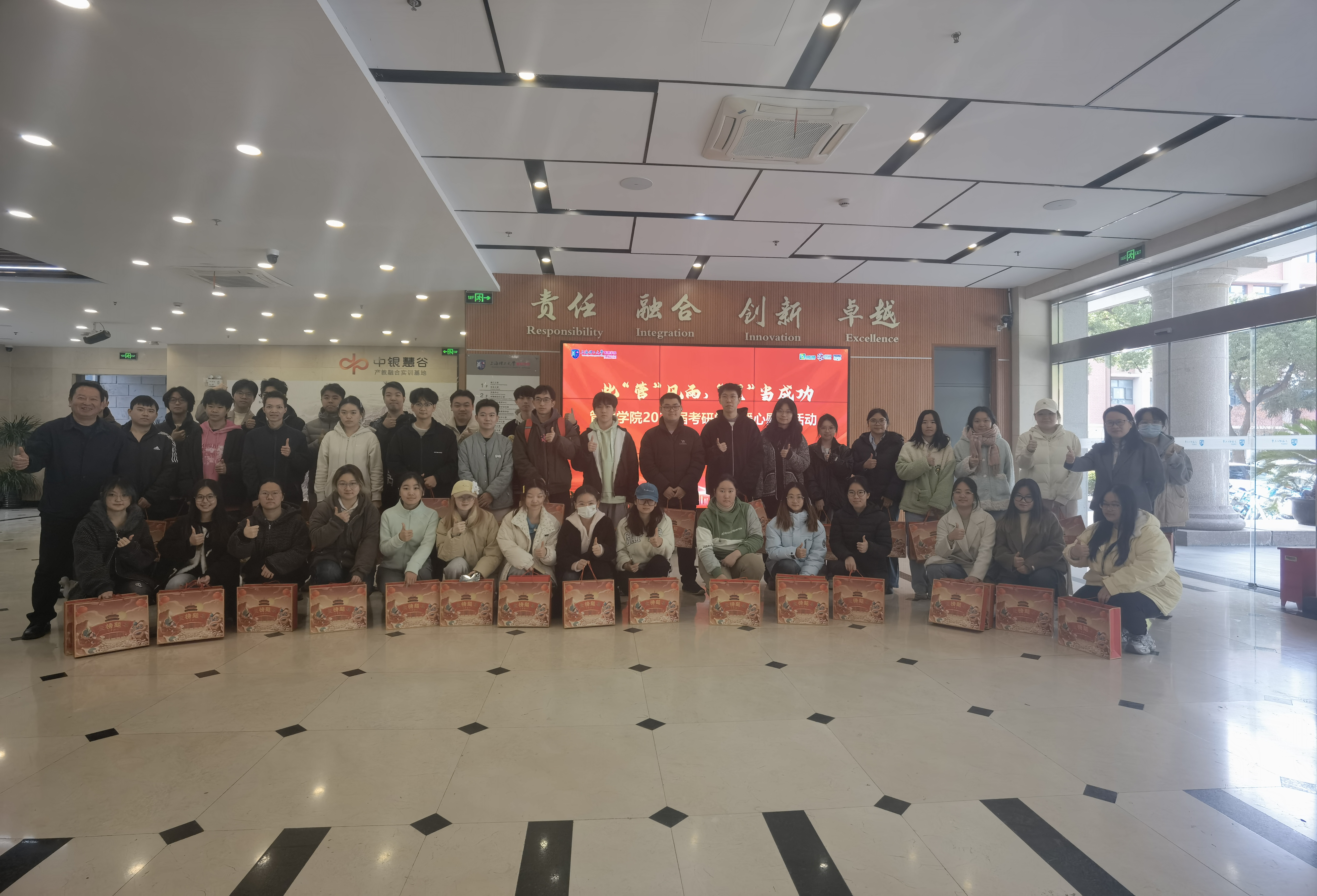 随后,学院领导们向考研学生代表赠送了精心准备的“金榜题名大礼包”。这份满载着学院心意的纪念品,不仅承载着对学子们学业有成的美好祝愿,更让在场每一位同学深切感受到了来自管理学院大家庭的温暖与支持。