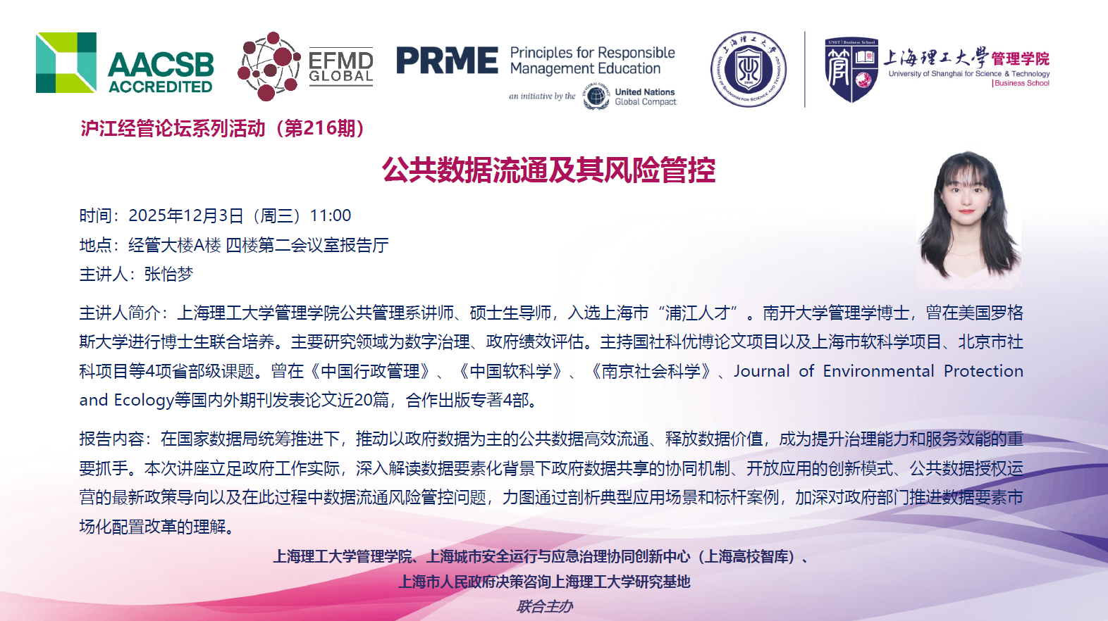 沪江经管论坛系列活动(第216期):公共数据流通及其风险管控
