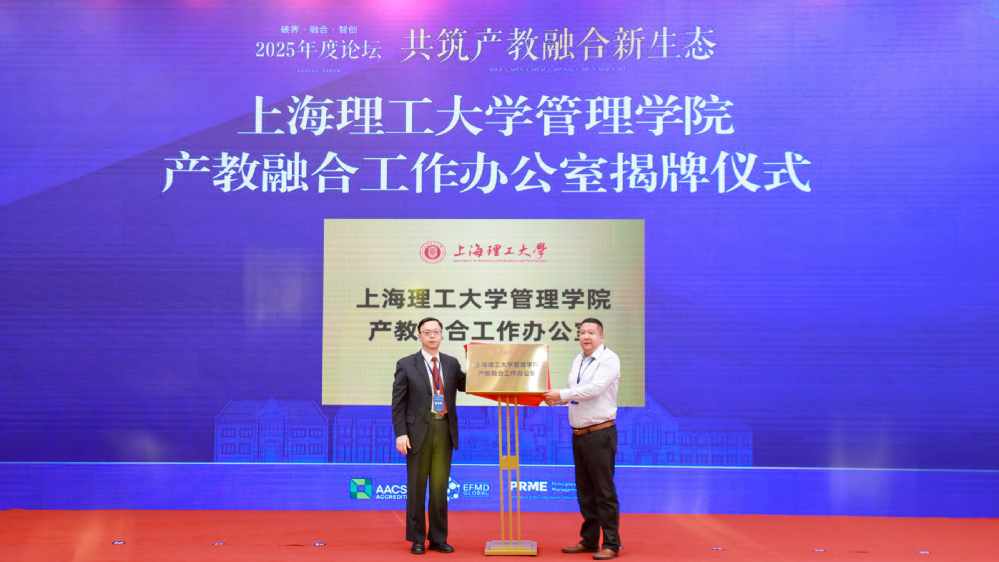 管理学院院长赵来军代表学院作2025年度产教融合专题报告。他表示,学院积极响应学校综合改革部署,确立了“系统+科技+商学”育人新定位,构建了“AI-SMART”五阶递进式人才培养模式,通过共建“随产而动”的课程体系、打造沉浸式场景教学、汇聚学界业界“双师”资源、搭建价值共生赋能平台等多元路径,形成了特色鲜明的“上理管院模式”。学院紧扣产业前沿动态,在低空经济新赛道设立人才培训基地,并与多家金融机构共建特色班级与实训平台。相关举措有效提升了人才培养质量与社会服务能力。未来,学院将进一步深化“校-企-研”闭环机制,拓展国际合作,以AI为驱动,重塑商科人才培养链路。