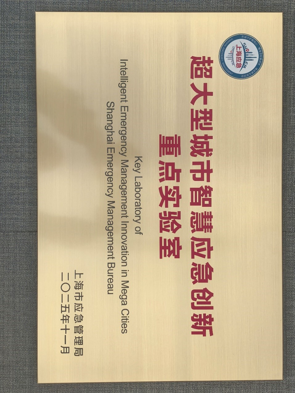 “超大型城市智慧应急创新重点实验室”铭牌