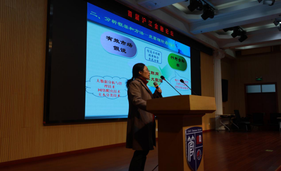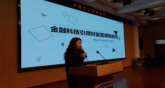 The four guests then gave a keynote speech on the topic of financial technology. First, Professor Liu Qingfu from the school of economics in Fudan University, shared “the financial application of blockchain and its regulatory framework”. Professor Liu’s speech talked from the underlying logic of the block chain to the specific application of it, and has in-depth analysis of supervision of its structure.The logic is rigorous and easy to understand. Mr. Gui Anhui, executive vice general manager of Product Business Group of Ping An Securities’ information technology center, shared “the application of financial science and technology in secondary market” . He cited the core financial science and technology products centered with the securities of Ping An Securities as an example, showed the charm of the financial science and technology through the application. Zhu Zhenyi, a quantitative researcher in Xiangcai Securities Investment Department, shared “financial technology leads to intelligent wealth management” , this paper introduces how Xiangcai securities uses financial technology to solve the problem of wealth distribution and increase in value, constructs investment strategy with quantitative thinking, and assists clients to make rational decisions with scientific and technological means to eliminate subjective emotions,Last, Duan Jiangjiao, associate professor, Department of Finance of the school of business, made a report on “intelligent processing and application of Internet stock through big data” . This paper analyzes the academic research methods of financial science and technology, obtains the objective data and carries on the statistical analysis with Python, and demonstrates the wonderful academic thinking.