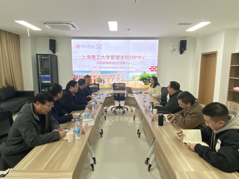 In the meeting room of the EDP center, Ms. Chen Lina introduced the situations and advantages of USST, the Business School, and the EDP center to the leaders. Mr. Zhang Wei showed the leaders the latest courses designed and carried out by the EDP center, including the national first-class teacher training for innovation and entrepreneurship, the innovation and entrepreneurship ERP experiential teacher training, the advanced seminars for outstanding managers, and the student study tours, etc.