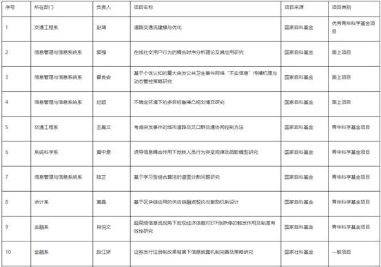 The national-level scientific research projects could measure the construction level of disciplines, the innovation strength of science and technology, and the organization ability of scientific research, and it has a strong traction on developing scientific research, constructing disciplines, and improving scientific research level. Over the years, our school has attached great importance to the ecological construction of disciplines, played the leading role of two traditional advantaged disciplines of management science and engineering and system science, constantly innovated the organization and management of the application of national projects, and strived to stimulate the enthusiasm of scientific researchers, especially the young faculty to engage in the cultivation of national scientific research projects. In 2021, according to the unified deployment requirements of the party committee and administration and the supported of relevant departments of the university, our school further increased the efforts of scientific research reform and the construction of scientific research talents, especially increased the funding for national projects, and strengthened the overall planning and organizing managements of project application. Through holding mobilization meetings and experience exchange meetings, the school has carefully organized the activities such as how to select good topics, make good design arguments, and standardize the filling out of application materials. The applications were constantly polished through “face to face, one-on-one” guidance of experts’, checks, revisions, and refinements.