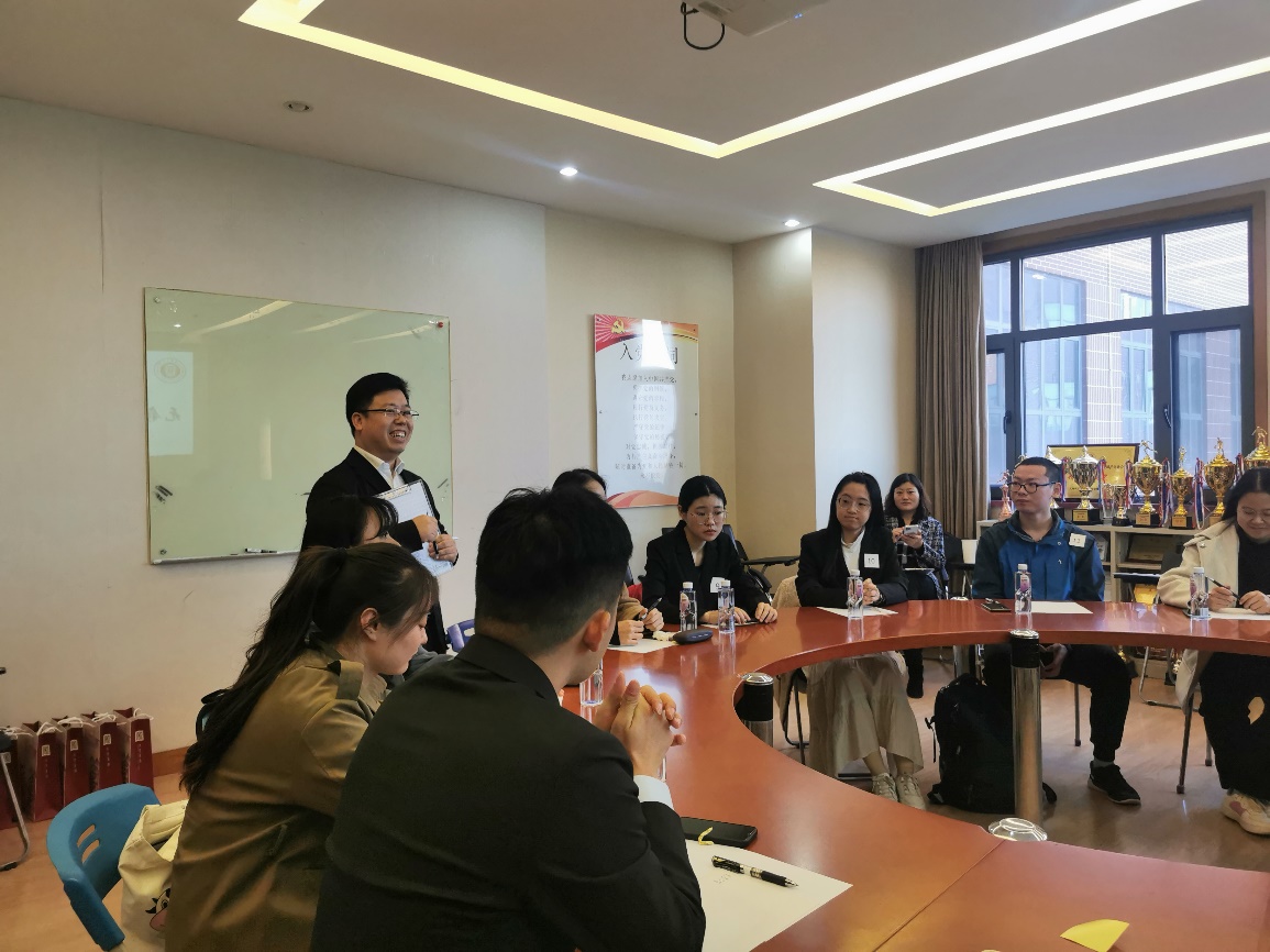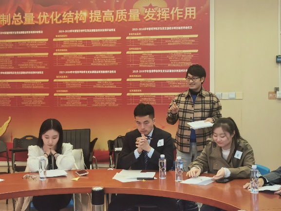 To cope with the tough employment situation and fierce competition in the job market and to help students to accumulate experience and improve interview skill in an actual interview, also to help them scientifically and rationally deign and plan for their career, a Leaderless Group Mock Interview Contest was held by Business School, USST, in Conference Room 410, Economics & Management Building, on Nov. 10, 2021.