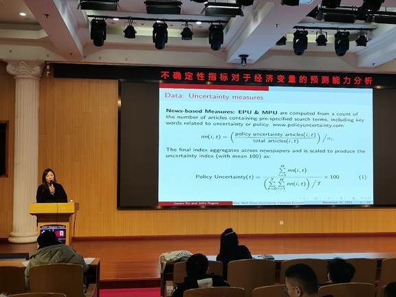 In this lecture, Dr. XU Jiawenevaluated the ability of several popular measures of uncertainty to forecast in-sample and out-of-sample over real and financial outcome variables, as well as over different quantiles of the GDP growth distribution. She emphasized that real-time data and estimation considerations were highly consequential, owing to look-ahead bias. In this paper, the authors constructed new real-time versions of both macroeconomic and financial uncertainty, and analyzed them together with their ex-post counterparts. They found some explanatory power in all uncertainty measures, with relatively good performance by ex-post macroeconomic uncertainty (MU). However, real-time MU performed poorly compared to its ex-post counterpart, a finding that they related to sub-sample instability in the performance of ex-post MU.