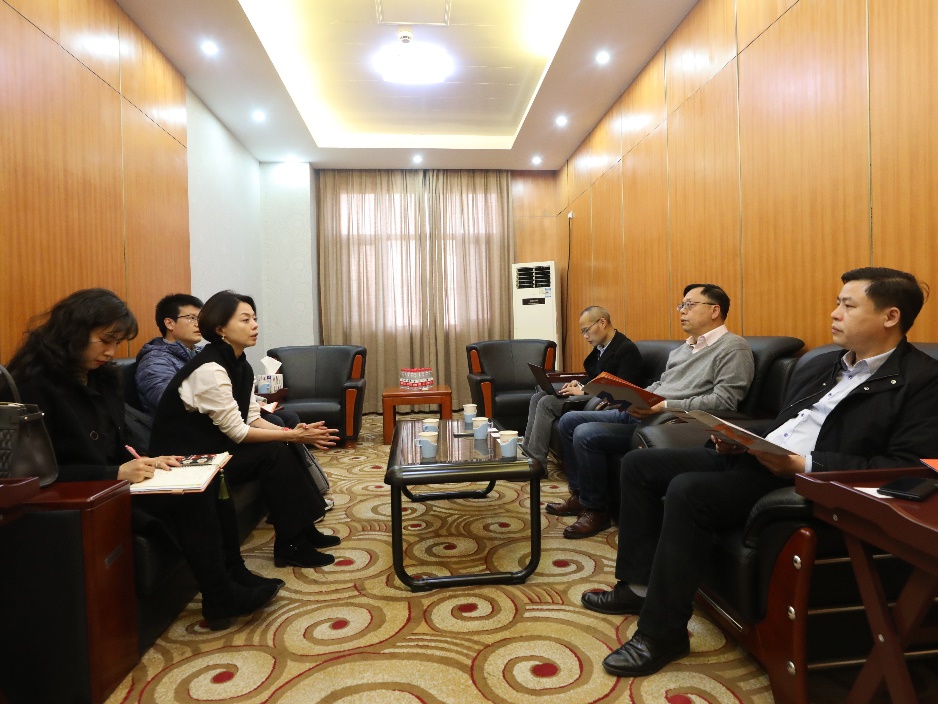 On the afternoon of December 17th, Minister Bai Qinqin, head of the International Exhibition Department of Council for the Promotion of International Trade Shanghai, and her delegation came to the Business School(BS) to conduct work exchange. Dean Zhao Laijun received Minister Bai Qinqin and her delegation in the 508 reception room of the school. He Jianjia, vice dean, and assistant Huo Liang’an, attended the reception and exchange.