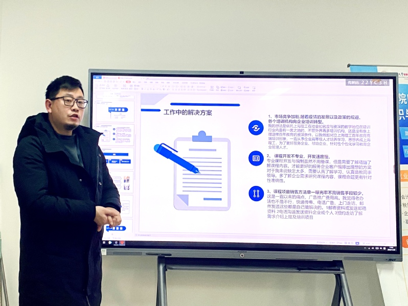 At the meeting, the teaching staff of the center summarized and reported the work of 2021 respectively, and put forward the work objectives and plans of 2022 in combination with their own work. In 2021, under the correct leadership of the leaders of the school and the center, against the background of the normalization of epidemic prevention and control, the EDP center overcame many difficulties, set up a total of 10 various training programs, and trained 410 students offline and more than 1000 students online. Among them, 7 social training projects and 2 skill training projects such as Python computer language programming were carried out. At the same time, the center actively carried out online public welfare training projects and held 12 special open courses on investment promotion. In addition, the EDP center held several exchange activities for entrepreneurs and human resources executives, established cooperation with many excellent units, and signed strategic cooperation agreements.