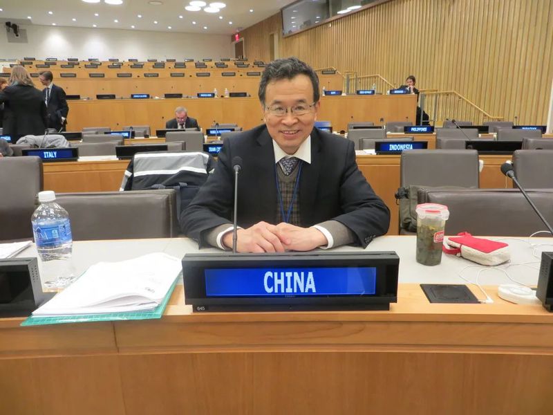 Photo of Professor YANG Jianzheng at the meeting of UNCITRAL working group III (Online Dispute Resolution)