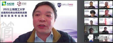 Subsequently, Zhang Zheng, the Vice Dean of USST-BS, delivered a speech. He reviewed the training process of the Business School for the school competition, and summed up the valuable experience of teachers from the Department of International Trade leading the team to participate in the competition for several years. He said that due to the impact of the COVID-19, this year's online school competition is facing unprecedented challenges, and the competition opportunity during the epidemic is rare. He hoped that the students will innovate and compete to be the first to show the youthful demeanor of contemporary college students, and contribute to economic construction and development.