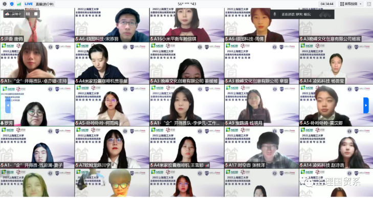 Qin Bingtao, a Vice Director of the International Trade Department of the USST-BS, announced the official start of the competition. The product launch session of the school competition started at 13:30 and lasted until 17:30, lasting four hours. Although the format of the competition was changed to online, it brought certain difficulties to product display and team cooperation. However, the enthusiasm of the players did not diminish, and each team continued to make breakthroughs. The well-made videos, fluent spoken English, and contagious narration fully demonstrated the students' enthusiasm for the competition and their desire to win, and also left a deep impression on the judges.