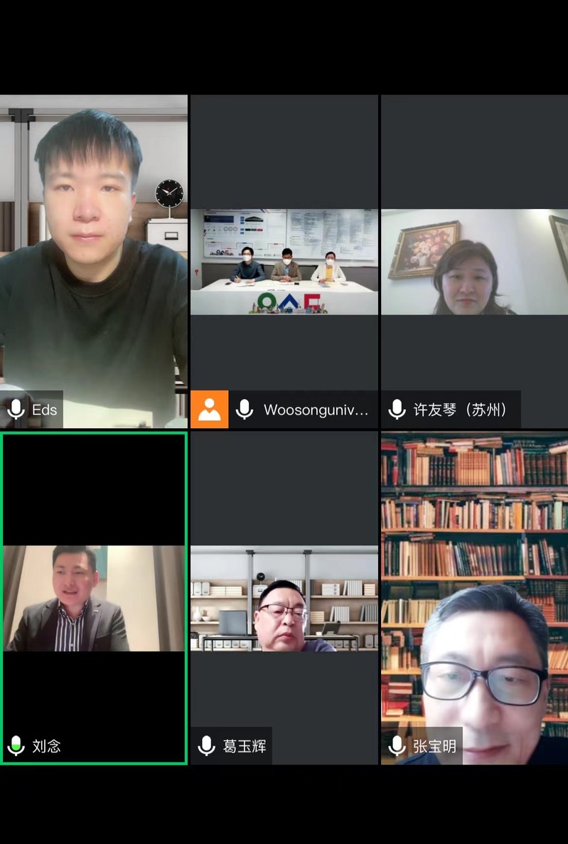 On the afternoon of June 10, Beijing time, the EDP Center of the University of Shanghai for Science and Technology and the School of International Education of South Korea Woosong University held an online video conference. Liu Nian, dean of School of International Education of Woosong University, Ge Yuhui, executive deputy director of EDP Center of University of Shanghai for Science and Technology, President Xu Qin of Kunshan 699 Training Center and other relevant personnel attended the meeting, which was presided over by Xu Qin.