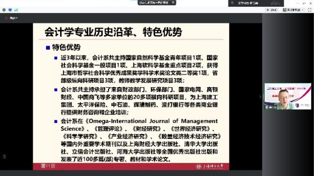 The introduction especially emphasized the cultivation and enhancement  of doctoral programs in business administration in recent year: business administration and industrial engineering (direction of technology economics and management) were awarded the list of national and provincial (Shanghai) first-class undergraduate program construction points in 2021. A total of 8 talents have been employed in the past year. More than 30 high-level papers have been published, including 9 papers from SSCI Tier 3 or above. Three national projects and 10 provincial and ministerial projects have been approved. A group of teachers participated in overseas academic exchanges. The offline course of project management has been awarded the first-class course in Shanghai and is cultivating the national first-class course. The course of Human Resource Management was awarded as a model course of integration of party history learning education and curriculum in Shanghai universities. More than 10 awards were achieved for undergraduate and graduate students. Faculties received the second prize of Humanities and Social Sciences from the Ministry of Education. The cooperation project T Cloud Intelligent Marketing Cloud Platform won the third prize of the Shanghai Industry-University-Research Cooperation Excellent Project Award in 2021, etc.