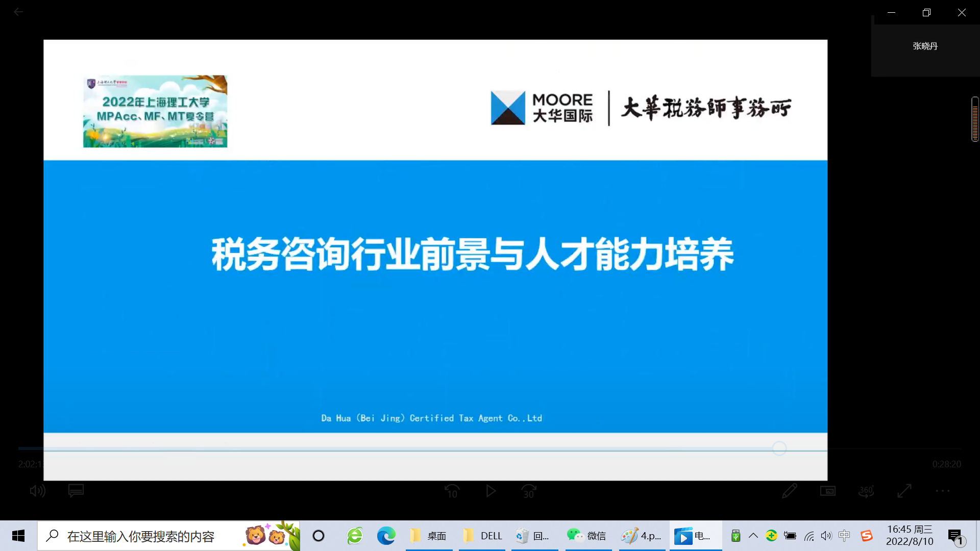 Zhang Xiaodan from the Shanghai branch of Dahua (Beijing) Tax Law Firm gave a lecture on Prospects of Tax Consulting Industry and Talent Cultivation to the campers, introducing tax audit and tax planning in detail and discussing the development trend and strategy suggestions of the tax consulting industry.