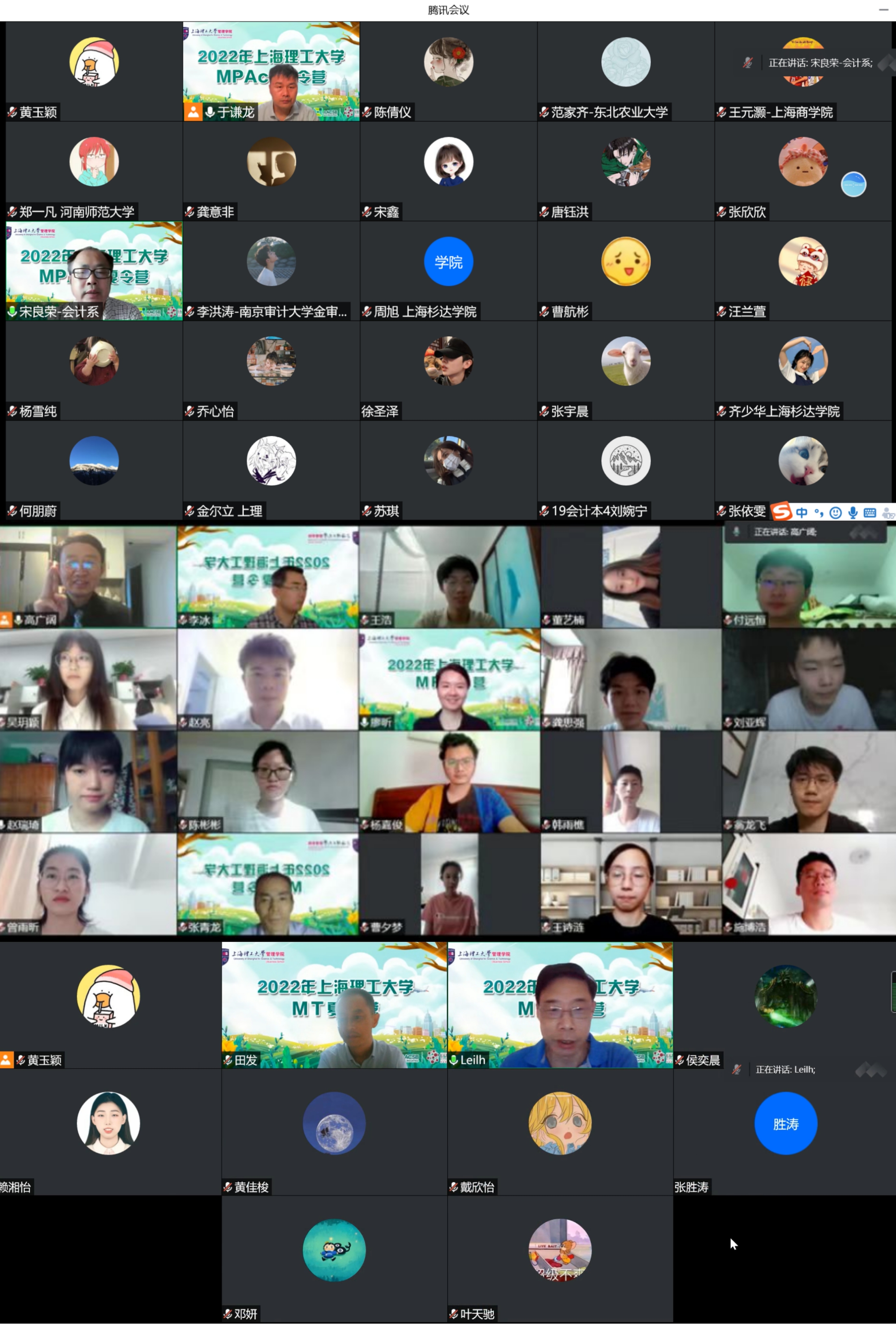 On August 10, 2022, the 2022 MPAcc / MF / MT summer camp of Business School USST for national excellent college students was successfully held online. This summer camp has received wide attention from society and outstanding college students have applied enthusiastically. Zhang Yongqing, Vice Dean of Business School and Deputy Director of Professional Degree Education Center of USST, Song Liangrong, leader of MPAcc discipline, Yu Qianlong, Deputy Director of MPAcc program, Gao Guangkuo, Director of MF program, Lei Lianghai, Director of MT program, Tian Fa, Director of Department of Public Finance and Taxation, Wang Yonglian, Deputy Director of Administrative Office of Professional Degree Education Center and other teachers' representatives, teachers in charge of admissions and 52 students from various universities including “985” and “211” project universities across China participated in the Summer camp. The summer camp included the opening ceremony, introduction of the school, campus life, scholarship and employment, lectures by famous scholars, program introduction and online face-to-face interactive communication.
