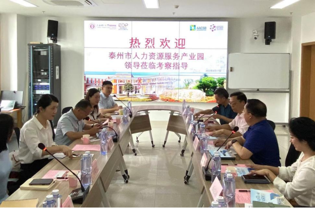 On the morning of August 17, Wang Min, the second-level researcher of Taizhou Medical High-tech Zone (Gaogang District) and executive of Taizhou Human Resources Service Industrial Park, and Zheng Li, the deputy general manager of Taizhou Huaju Human Resources Co. were invited to visit the EDP center of our school to discuss the cooperation with human resources service industrial park. Zhao Laijun, Dean of Business School of USST, Ge Yuhui, Deputy Executive of EDP Center, and Zhang Baoming, Director of Administrative Office of EDP Center participated in the reception. The meeting was chaired by Professor Ge Yuhui. During the exchange, the two sides discussed in depth about human resource training, talent attraction and school-enterprise cooperation.