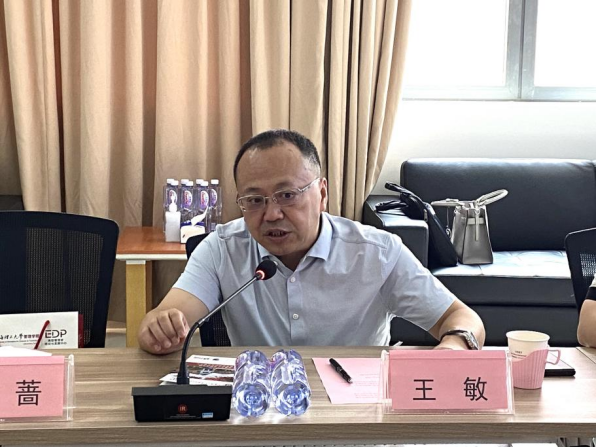 Zhang Baoming briefly introduced the basic status quo of EDP Center, its history development and service orientation of EDP Center as well as the current featured courses of the Center to all the guests. Zheng Li explained the purpose of the trip.