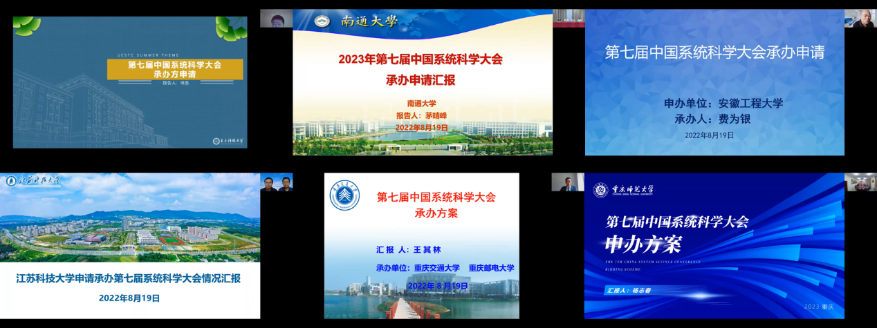 Subsequently, the six applicants of the next CSSC defended their applications one by one. After the defense, the Steering Committee discussed and voted, and academician Guo Lei announced on behalf of the Steering Committee of the CSSC that Chongqing Jiaotong University and Chongqing University of Posts and Telecommunications would jointly host the 7th CSSC, Nantong University would host the Frontiers of System Science Forum 2023, and Anhui Polytechnic University would host the 8th CSSC.