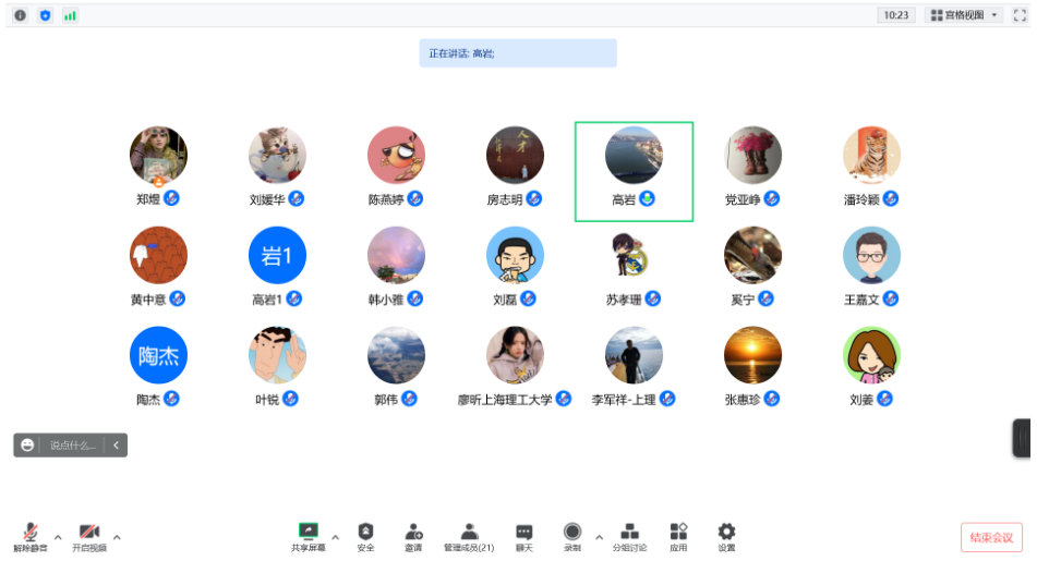 Gao Yan first introduced the status que of the innovation team building in Shanghai's high-level universities, and helped team members understand the value and implementation path of innovation team building from three aspects: the starting point of promoting innovation team building by the Municipal Education Commission, the management mode of interaction between discipline development and team building, and the talent cultivation and incentive plan in team building. Then, referring to the statistical data of the team's annual performance, Gao Yan summarized the team's achievements in the current phase from the aspects of high-level paper publishing, national project initiation, talent team building, undergraduate teaching achievements, and etc. He pointed out the directions that the team needs to endeavor in the next one to two years in comparison with the annual goals and final goals set up by the team and the assessment of the Municipal Education Commission. In view of the problems and weaknesses in the team development, Gao Yan proposed practical means and improvement measures based on the analysis of the characteristics of team members, so as to achieve the integration and promotion of team members and team development while improving their personal scientific research level. Gao Yan especially emphasizes that team building needs to refine direction, gather cohesive force, form highlights, actively serve national strategy and local development while completing quantifiable scientific research indicators, break through key technologies, and solve practical problems in social economy and people's life. In the final communication and interaction session, Gao Yan interacted with team members on issues concerning team members, such as how to define high-level papers and the assessment of the team.