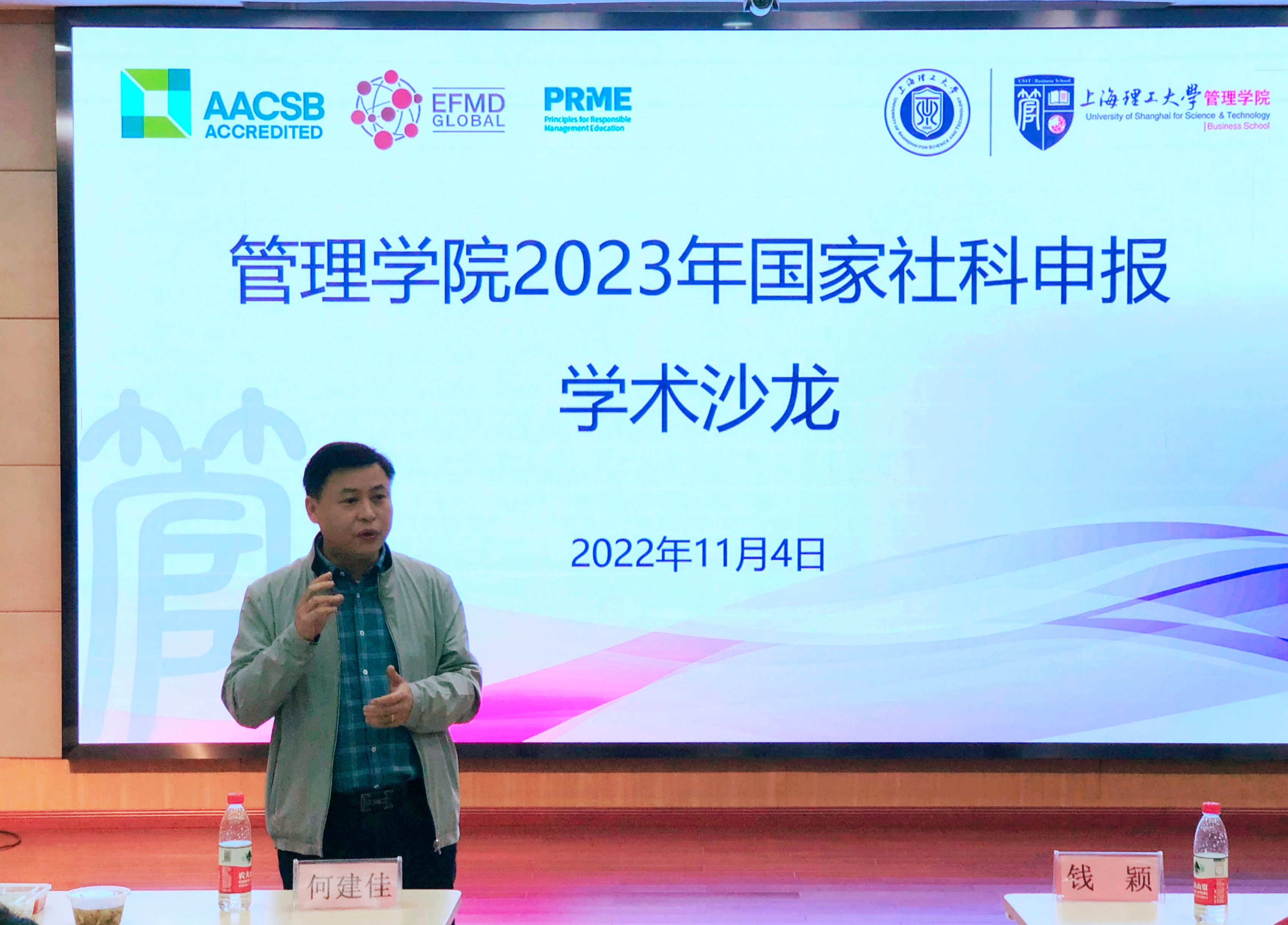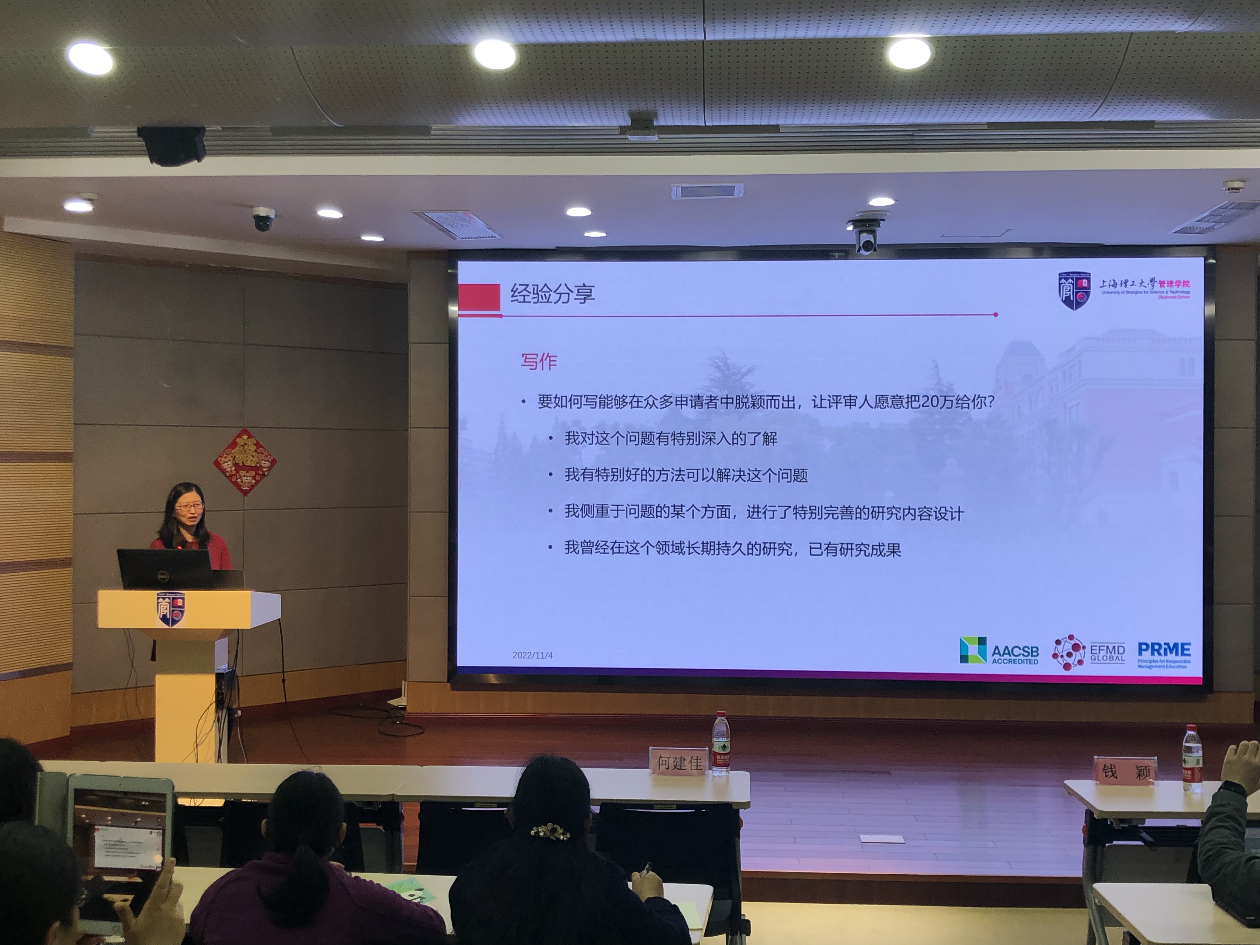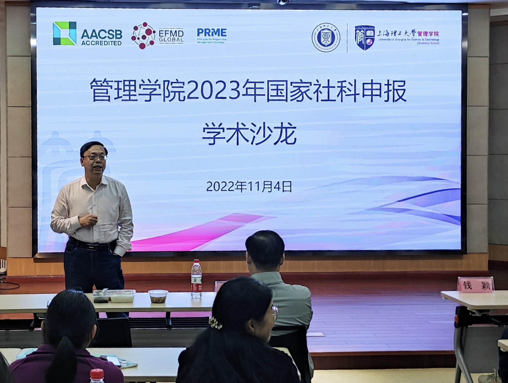 In order to stir the enthusiasm of teachers to apply for funds, stimulate the vitality of scientific research, and expand research ideas, on November 4, the Business school held the 2023 National Social Science Application Academic Salon, the 36th event of a series of activities of the Hujiang Economics and Management Forum, in the report hall of the Second Conference Room on the fourth floor. Professor Qian Ying and Associate Professor Zhao Xin were invited to give a report and share their personal experience in funding application. The meeting was presided over by Vice Dean He Jianjia, and Dean Zhao Laijun and more than 30 staff participated.