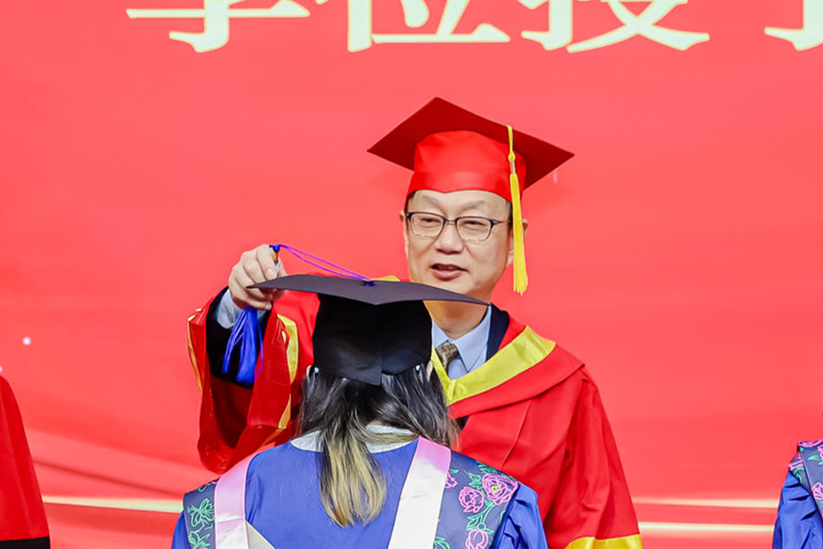 Cui Guomin read out the decision of the Academic Degree Evaluation Committee USST on awarding the master's degrees of MBA, MPA, MEM and MPAcc to the students of 2022. The leadership presented the certificates to the graduates whileturning the tassel.