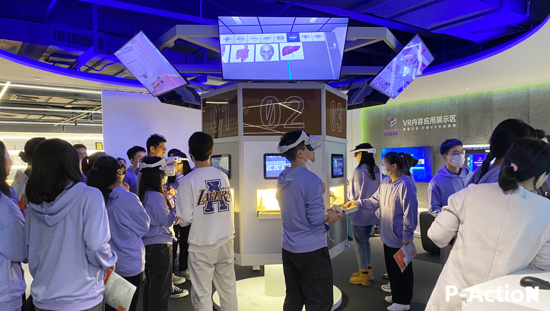 Next, the students learned about the representative products of MANHENG in the exhibition hall: firstly, IDEAVR2021, as a VR creation engine, which can quickly build VR scenes and interactive content creation without mastering the code, followed by 7 Light, a professional VR headset for B-end industry market; next is G-Motion5.0, which has been continuously updated since 2011. Continuously iterating and updating, with independent intellectual property rights, copyrights and patent certificates, it is a virtual reality human-computer interaction motion capture and positioning optical system.