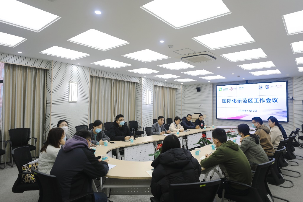 In the morning of December 9, the Business School held the first working meeting of Internationalization Demonstration Area. The meeting was chaired by He Jianjia, Vice Dean of the Business School, and attended by Professor Geng Xiuli, Professor Qian Ying and Associate Professors Liu Dan, Assistant Dean Wang Yaopeng and Lu Ke, Director of the Internationalization Construction Office Zhong Weibing, and more than ten teachers with Ph.D. degree from abroad and foreign teachers.