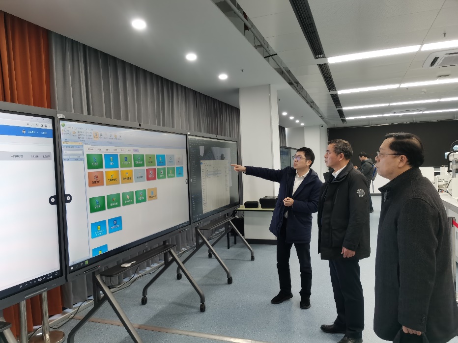 Subsequently, accompanied by Dean Hu Xiaoxuan and others, Sheng Chun and his delegation visited the National and Local Joint Engineering Research Center for Intelligent Decision and Information System Technology, the Key Laboratory of the Ministry of Education for Process Optimization and Intelligent Decision, the Philosophy and Social Sciences Laboratory of the Ministry of Education for Data Science and Intelligent Social Governance, and other scientific research bases of the School of Management of Hefei University of Technology, and inspected scientific research achievements in space system management, intelligent medical health management, intelligent manufacturing engineering management.