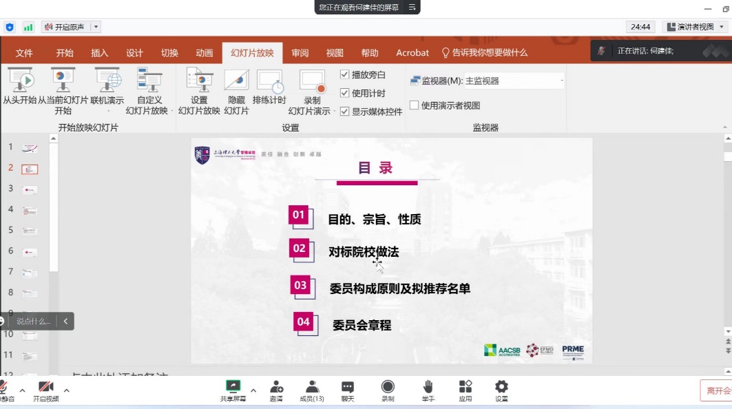 First of all, Zhao Laijun introduced the background of the establishment of the committee. He said that the School had launched EQUIS certification at the beginning of 2022, and began to build an international school-running demonstration zone in 2022. In 2023, it will usher in AACSB re-certification. In combination with the international construction situation, the School will establish a development strategy advisory committee to provide advice for BS's decision making and help the BS's development.