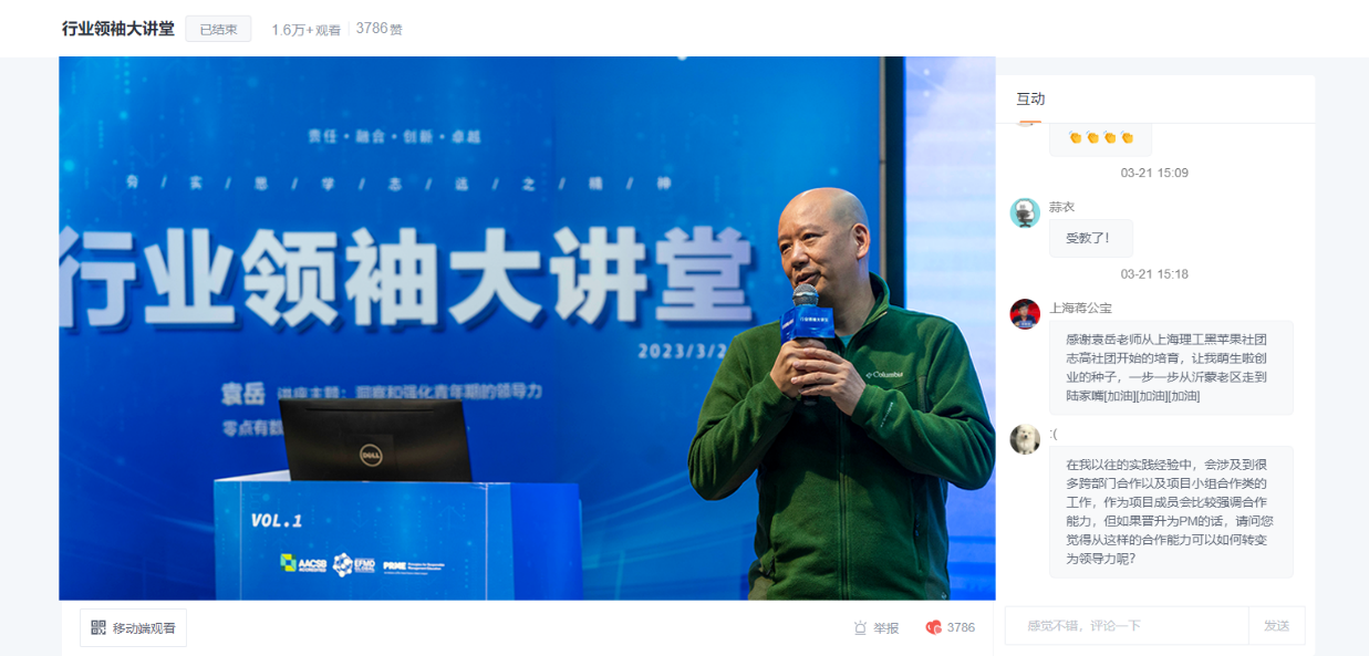 Teachers and students who participated in the industry lecture hall online showed a high level of enthusiasm, with more than 16,000 people participating in interactions and likes. This exchange activity not only enhanced the critical thinking ability and industry awareness of teachers and students, but also helped students establish a new knowledge system and ability framework. It also helped the Management School implement the strategy of promoting scientific and technological development and strengthening the country with talents, and cultivate more composite management elites for social development.