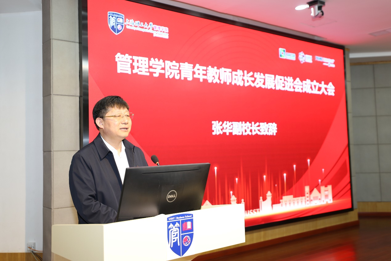 On behalf of the school, Zhang Hua warmly congratulated the establishment of the Youth Promotion Association of the Business School and affirmed the profound significance of the establishment of the Youth Promotion Association of the Business School. He stated that the establishment of the Youth Promotion Association can better promote the transformation of young teachers from doctoral students to teachers, provide better conditions for young teachers to attend good classes and stand on good positions, and reflect that the Business School has entered a new stage in teacher development and educational reform. He put forward several expectations for the growth and development of young teachers: firstly, they should focus on professional growth and improve the quality of education and teaching. Secondly, it is necessary to establish a concept of sustainable development and hone one's professional psychological qualities. Thirdly, they should pay attention to our comprehensive development and strengthen our sense of social responsibility.