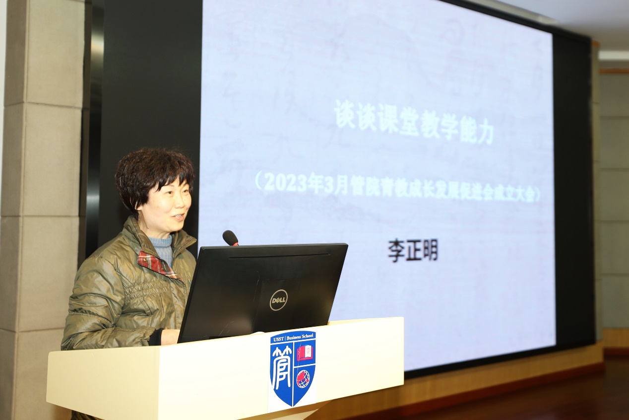 On the afternoon of March 28, 2023, the establishment conference of the Youth Teacher Growth and Development Promotion Association (hereinafter referred to as the Youth Promotion Association) of the Business School and the tutoring and training session for improving teachers' classroom teaching abilities were held in the lecture hall of the Business School. Vice President Zhang Hua attended the meeting, with Ma Jingbo, Secretary of the Party Committee of the Business School, Zhao Laijun, Dean of the Business School, Huang Xuan, Deputy Director of the Academic Affairs Office, Tong Yuanwei, Director of the Teacher Development Center, Li Chenxue, Vice Dean of the Innovation and Entrepreneurship School, and representatives of invited mentors and young teachers from the Promotion Association attending. The meeting was chaired by Zhao Jing, Vice Dean of the Business School.